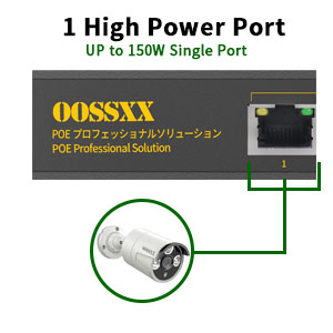 The PoE+ features a special design with Hi-PoE+ on port 1, allowing up to 150W of PoE+ power on a single port - ideal for high power devices such like IP PTZ cameras.