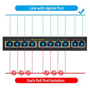 PoE ports are independent of each other, and isolated from each other, which can suppress broadcast storms and make network equipment more secure.